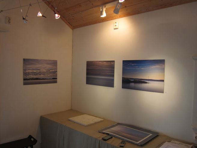 I går hang jeg opp bildene i Galleri Vera med kyndig hjelp av en kunstnerinne. Det var til stor hjelp for meg, fordi hun hadde gode tanker om sammensetningen av bildene ut fra farge og innhold. Det ble etter min mening et flott oppsett og det er en spesiell glede å få sett sine egne bilder på denne måten.