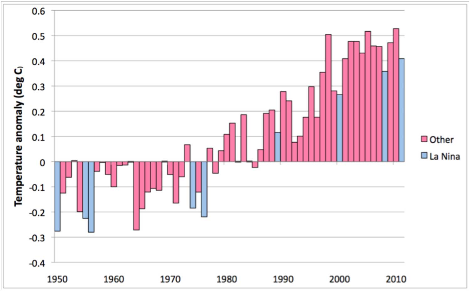 Noe som nok er ganske klart, er at det meste av denne oppvarmingen skyldes menneskelig virksomhet, da det ikke finnes naturlige prosesser som skulle tilsi en oppvarming. Solaktiviteten har vært på et minimum uten at det har bremset oppvarmingen.