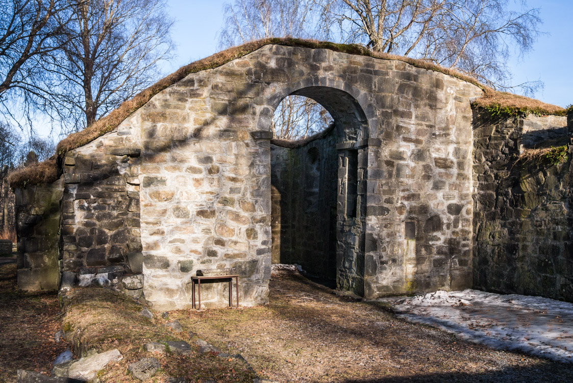 Jeg vet ikke hvor mange ganger jeg har kjørt forbi ruinen etter Olavskirken i Bamble på veien mellom Oslo og Kristiansand. Ofte har jeg tenkt at jeg burde stoppe en gang og se om det er mulig å ta noen bilder der. Men enten har været, tiden eller lyste vært for dårlig.