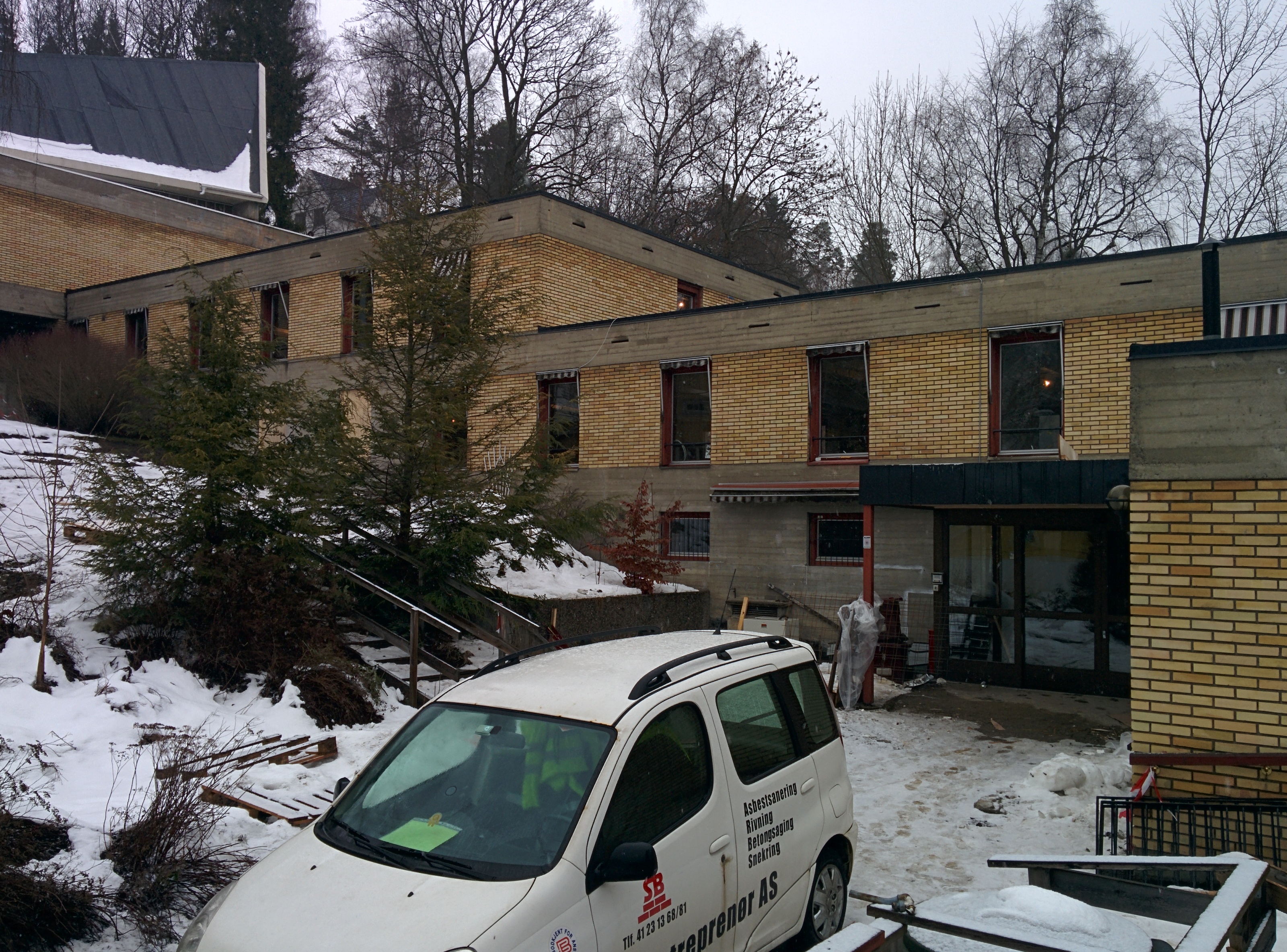Ombyggingen begynte allerede i desember etter at vi hadde fått ingangsettelsesavtalen fra kommunen. Hovedentrepenør er firmaet Realbygg as, mens vi har sideentrepenører for strøm, ventilasjon og rør.