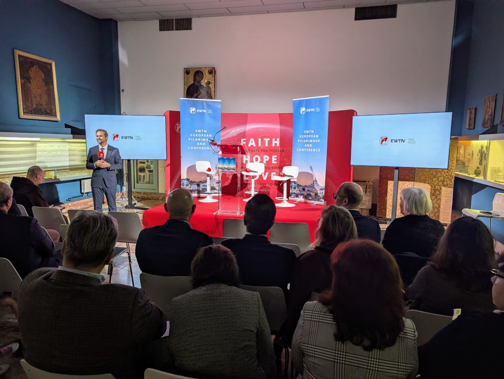 Hvert år holder EWTN et årlig møte i Roma for de europeiske stasjonene. Møtet begynte torsdag den 23. oktober om aftenen og varte til søndag ettermiddag den 26. Deltagerne kom fra mange land hvor EWTN er, tilsammen rundt 50 personer. Møtet inneholdt både en konferansedel og en hoveddel som var Hellig År valfart og en pilegrimsreise til Assisi. Jeg har tatt en serie bilder som jeg deler med dere her: